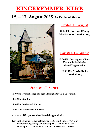 Bürgerverein Gau-Köngernheim: Kleiner Weihnachtsmarkt 17.00 Uhr, Kerbeplatz |