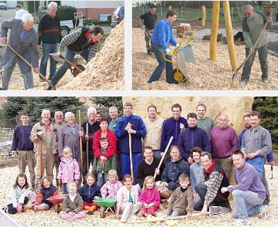 Am 31. März 2007 hatte die Gemeinde Gau-Odernheim zu einem Arbeitseinsatz auf dem neuen Kinderspielplatz in der Carl-Zuckmayer-Straße (Nähe Weingut Paukner) eingeladen. Über 30 fleißige Helfer fanden sich ein, um kräftig mit anzupacken. Vor allem die Anlieger waren zahlreich vertreten, schaufelten Hackschnitzel, verteilten diese mit Schubkarren und schwitzten so für eine gute Sache. Unter Anleitung von Frau Butsch vom zuständigen Planungsbüro Butsch & Faber wurden gleichzeitig noch die restlichen Pflanzungen innerhalb des Spielplatzgeländes vorgenommen. Während des von der Ortsgemeinde organisierten Frühstücks bedankte sich Ortsbürgermeister Bernd Westphal bei allen Helfern und freute sich ganz besonders darüber, dass zahlreiche Kinder den Spielplatz schon auf seine Tauglichkeit testeten und von den verschiedenen Möglichkeiten begeistert waren. Ein besonderer Dank ging an die Gemeindearbeiter Helmut Besser und Dieter Kratz, die mit der Vorbereitung zur Montage des Klettersteines, dem Aufbau der Spielgeräte, der Montage des Zaunes, Baumpflanzungen etc. im Vorfeld schon ganze Arbeit geleistet hatten. Insgesamt konnten so durch Eigenleistungen einige Kosten eingespart werden. In Kürze wird die Ortsgemeinde Gau-Odernheim zu einer offiziellen Spielplatz-Einweihungsfeier in die Carl-Zuckmayer-Straße einladen. Der Termin wird rechtzeitig in den Medien veröffentlicht.