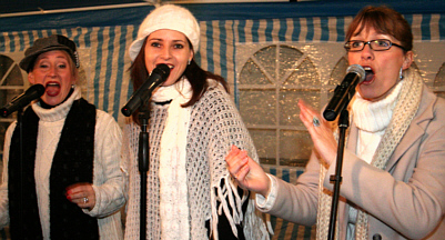 Wesentlich zur vorweihnachtlichen Stimmung trug das musikalische Begleitprogramm bei. Nach der Einstimmung durch den Spiesheimer Kinderchor “Little young voices” präsentierte das Blasorchester 1985 e.V. Gau-Odernheim unter der Leitung von Oliver Schmitt traditionelle und moderne Weihnachtsmusik im bewährten Big-Band-Sound. Für zahlreiche Nachwuchsmusiker des Orchesters war dies gleichzeitig der erste öffentliche Auftritt. Den Abschluss und wohl auch den Höhepunkt bildete der Auftritt der “Wedding Divas”, die erstmals in Gau-Odernheim zu hören waren. Der “Mini-Gospel-Chor” bestehend aus den Profi-Sängerinnen LeeZa Nail, Ully Mathias (beide aus Gau-Odernheim) und Silke Vorrath (Mainz), begleitet von dem Pianisten Alex Mathias, sorgte mit Stücken wie “Amazing Grace”, “The rose” und “O holy night&rdquo, aber auch fetzigen Titeln wie “Let it snow” oder “Oh happy day” dafür, dass das Publikum begeistert mitklatschte und mitschnippte.