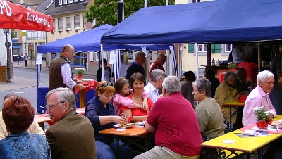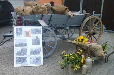 Herbst ist nicht nur die Zeit zum Drachensteigen - Herbst war und ist auch die Zeit der Ernte. Anlässlich des Gau-Odernheimer Marktes am 4. Oktober 2009 belebte der Geschichtsverein die beschwerliche Kartoffelernte vergangener Tage wieder. In einer kleinen Ausstellung konnte ein schön restaurierter Erntewagen mit Kartoffelsäcken bestaunt werden. Alte Gerätschaften, wie “Karscht”, “Grumbeerhack” und “Drohtkerb” wurden mit ihrer Funktionsweise vorgestellt, sowie alte Fotos zur Thematik präsentiert. Natürlich konnten die Kartoffeln auch stilecht als “Gewellde ausm Kessel” mit “Weichekees unn Lewwerworscht” als rheinhessisches Erntemenue genossen werden. Und da in Rheinhessen auch Braugerste angebaut wird, durfte das “Oremer Schloßbräu” vom Fass und in urigen Flaschen natürlich nicht fehlen. Hier wurde Bezug genommen auf die letzte Odernheimer Gasthausbrauerei, die bis 1893 am Schloßturm von Adam Scheuer III betrieben wurde (heute Anwesen Einsfeld). (te)