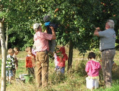 Am Mittwoch, dem 2. September 2009, haben sich Kinder der Kindertagesstätte “Regenbogen” und des Kindergartens “Nach dem alten Schloss” auf den Weg gemacht, um gemeinsam mit der Rentnerbande auf der Gau-Odernheimer Streuobstwiese Äpfel zu ernten. An der Wiese angekommen, haben die Kinder, eifrig und mit viel Freude, die Äpfel in die bereitgestellten oder mitgebrachten Eimer gesammelt. Nach vollendeter Arbeit haben alle Kinder ihre Rucksäcke ausgepackt und das mitgebrachte Frühstück auf Picknickdecken verzehrt. Die geernteten Äpfel wurden nach Westhofen gebracht und dort zu Apfelsaft verarbeitet, der von den Kindern gerne getrunken wird. Alle Äpfelsammler, das “junge Gemüse” wie auch die “ältere Generation”, möchten diese Aktion im nächsten Jahr gerne wiederholen, da alle eine riesige Freude bei der Apfelernte hatten. (gf)