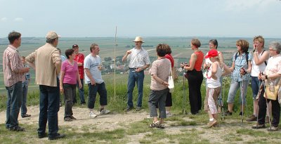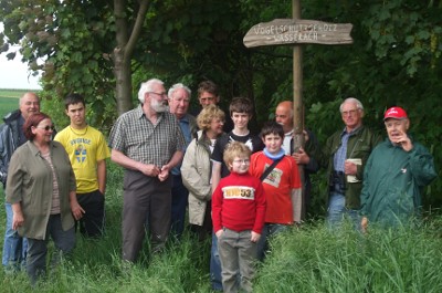 Für hiesige Verhältnisse war es dichter Wald, in den die zweite Wanderung dieses Jahres der Naturschutzgruppe Gau-Odernheim e.V. am 9. Mai 2009 führte. Eine gut gelaunte Gruppe mit Teilnehmern von 7 Jahren bis 70 Jahren traf sich am Gau-Odernheimer Ortsrand und startete ins Vogelschutzgehölz Wässerach an der Gemarkungsgrenze zu Biebelnheim. Auf dem Weg dorthin konnten die neugierigen Naturfreunde den Siegeszug des Orientalischen Zackenschötchens erkennen, Jungbäume mit Sonnenbrand, den Balzflug der Feldlerche, die seltene Grauammer, sowie die Vermehrungsstrategie der Zikaden. Werner Kutz, der die Gruppe führte, erläuterte im Wässeracher Gehölz, warum die dichten Baumkronen keinen Bodenbewuchs zulassen, machte auf Eichhörnchen aufmerksam und fing einen Grasfrosch, welcher nach ausgiebigem Betrachten wieder ins Waldlaub gesetzt wurde. Über eine Streuobstwiese, die von der Naturschutzgruppe gepflegt wird, und vorbei an Nistkästen für Schleiereule und Turmfalke in zwei geschützten Ulmen marschierte die Naturgruppe zurück und genoss im Hof Uhink zum Abschluss ein kostenloses rheinhessisches Frühstück. (cmk)