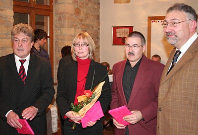 Rainer Merz, Claudia Luzius, Erich Lauer und Ernst Schad wurden für ihre Arbeit an der Gau-Köngernheimer Chronik geehrt.