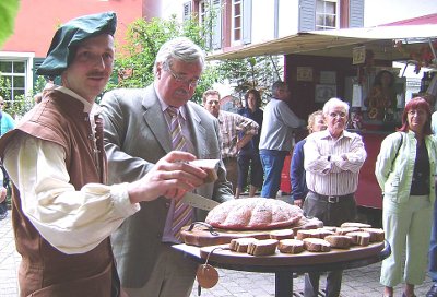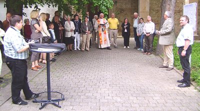 Am Sonntag, dem 3. Mai 2009 fand die Einweihung der neuen Schleifen und Alternativrouten des Jakobspilgerwegs statt. Nachdem bereits ab 10.15 Uhr in Gau-Köngernheim eine Tafel am alten Schulhaus eingeweiht wurde, fand nachmittags auf dem Kirchplatz in Gau-Odernheim ein Pilgerfest statt. Nach einer Andacht in der St. Rufus-Kirche mit Pater Egbert und Pfarrer Rose enthüllten Bürgermeister Westphal und Herr Zick von der St. Jakobusgesellschaft die Pilgertafel. Es schloss sich ein buntes Programm an, das von einer Orgelführung für Kinder bis zu einem Gitarrenkonzert reichte. Bei einer Führung durch die ehemalige mittelalterliche Wallfahrtskirche konnte “Junker Thomas” interessante Einblicke vermitteln. Der katholische Frauenkreis bot begleitend Kaffee und Kuchen an, während der Geschichtsverein für herzhafte Genüsse sorgte. Optischer und geschmacklicher Hingucker war hierbei eine “Pilgerpastete” in Muschelform, die in Form mundgerechter “Pilgerhappen” ausgeteilt wurde. Guten Anklang fand auch wieder das nach altem Rezept gebraute “Odernheimer Schloßbräu”. (te)