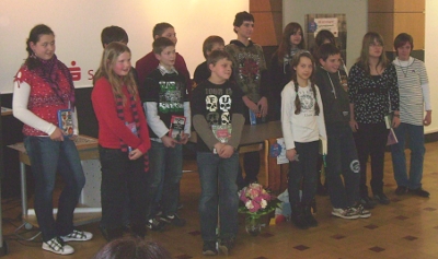 Im Anschluss traten die drei Klassenbesten noch einmal gegeneinander an und daraus ging Jana Ehlenberger als Schulsiegerin hervor. Gleichzeitig hatte sie sich für den Lesewettbewerb auf Kreisebene qualifiziert. In der Gruppe B, in der alle Gymnasien und Realschulen des Landkreises vertreten waren, konnte sich Jana erneut gegen starke Konkurrenz durchsetzen. Seit etlichen Jahren ist dies das erste Mal, dass ein Vertreter der Realschulen bei der Kreisentscheidung punkten konnte.