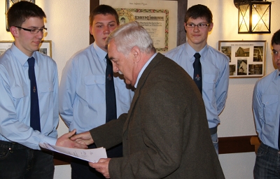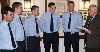 Jugendwart Steffen Rohmer berichtete über die Tätigkeiten der Jugendwehr. Besonders erfreulich ist die Tatsache, dass in diesem Jahr wieder vier Jugendwehrmitglieder in die aktive Wehr übernommen werden konnten. Der Brandschutzdezernent Fischer führte die Verpflichtung von Marcel Dupré, Thilo Held, Pascal Illing und Sven Willimek durch.