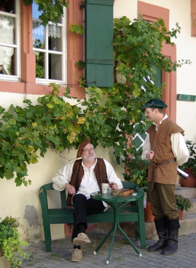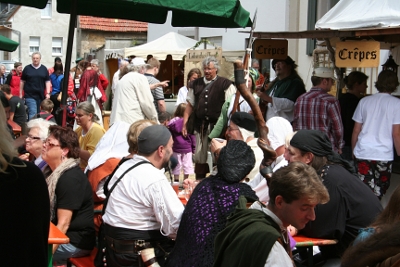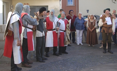 Für die Theater-AG der Realschule “Am alten Schloß” hatten die Lehrerinnen Martina Meyer und Steffi Lind eine Schulszene mit Pfarrer Rose, sowie einen Auftritt von Leichenträgern und Passanten arrangiert, die viel Beifall ernteten. Den Höhepunkt der hervorragend angenommenen Veranstaltung stellte dann der Auftritt der Rittergruppe des Gau-Köngernheimer Bürgervereins in ihren schmucken Rüstungen dar, sowie die Besichtigung des “Burghofes” von Familie Einsfeld. (te)