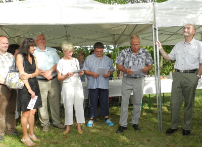 Anlässlich des ersten Bauerngartenfestes der Naturschutzgruppe Gau-Odernheim e.V. auf dem Natur-Erlebnis-Platz begrüßte Vorsitzender Manfred Brunn (li) das 100.Mitglied Anni Paukner (re) aus Gau-Odernheim herzlich und gratulierte ihr mit einer Urkunde. Schriftführerin Christine Merkel-Köppchen (Mitte) überreichte ihr im Namen des Vereins einen Blumenstrauß. Der Neustart des Vereins vor 5 Jahren begann mit 38 Mitgliedern. Der stark gestiegene Zuspruch, auch von vielen Jugendlichen (20%), zeigt das Interesse an der Natur und macht Lust mitzuarbeiten. (cmk)