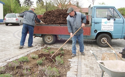 Der neu gestaltete Parkplatz vor dem Gau-Odernheimer TSV-Sportheim präsentiert sich derzeit nicht nur mit den blühenden Bäumen, Sträuchern und weiteren Pflanzen von seiner besten Seite, denn das ehemalige Schlagloch-Areal wurde ja bekanntermaßen in ehrenamtlicher Arbeit zu einem Aushängeschild für das gesamte Sportgelände. Um die Pflege der Pflanzflächen und des kompletten Platzes kümmern sich im Besonderen die Rentnerbande-Mitglieder Gerd Mendler und Kurt Sander in regelmäßigen Arbeitseinsätzen. So wurde in den letzten Tagen vor allen Dingen Nachpflanzungen vorgenommen, Unkraut gejätet, neuer Rindenmulch aufgebracht und die Pflasterflächen gekehrt – mit anderen Worten: die Nachhaltigkeit ist somit auf Dauer sicher gestellt. Auf unserem Foto sind die beiden “Hobby-Landschaftsgärtner” in Aktion und wie immer ist auch der blaue Bus der Rentnerbande im Einsatz. “Ohne unseren Oldtimer wäre manches nicht machbar. Wir behaupten auch ganz stolz, dass dies das meist genutzte Transportmittel weit und breit ist”, so die einhellige Meinung der rührigen Gau-Odernheimer Ehrenamtsgruppe. (mb)