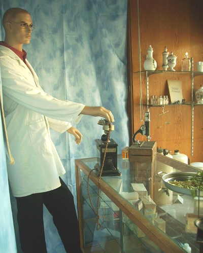 ...gibt es neben zahlreichen anderen Exponaten im aktuellen Museumsschaufenster zu bestaunen. Im historischen Laden von Werner Boos am Untermarkt wurde eine Apotheke im Stile der 1950er Jahre nachgebildet. Hierfür wurde eine Vielzahl an Gerätschaften, Waagen, Flaschen und Verpackungen aus der Bevölkerung - leihweise oder auch zur späteren musealen Nutzung - zur Verfügung gestellt. Neben einem historischen Abriss über die Entwicklung der Gau-Odernheimer Apotheke, die seit nunmehr 180 Jahren in unmittelbarer Nachbarschaft betrieben wird, gibt es eine Vielzahl heute skurriler Artikel zu entdecken. Grund genug, sich beim nächsten Sonntagsspaziergang einmal einige Minuten Zeit zum Studium der Exponate und ihrer Erläuterungen zu nehmen. (te)