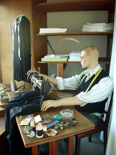 ...und hunderte Arbeitsschritte braucht es, um einen Maßanzug anzufertigen. Während man heute nur noch Änderungsschneidereien kennt, und die Bekleidung “von der Stange” kauft, war es bis in die 1950er Jahre noch üblich, sich einen Anzug “machen” zu lassen. Einen Einblick in eine Schneiderstube der 1920er Jahre erhält man in den nächsten Wochen im historischen Laden von Werner Boos am Untermarkt. Ein Großteil der Exponate stammt aus dem Nachlass des Gau-Odernheimer Schneiders Jakob Fröder II. Der Geschichtsverein hat neben Maschinen, Gerätschaften und Zubehör auch für entsprechende textuelle Erläuterungen gesorgt. Aufgrund der exponierten und zentralen Lage bietet sich ein Besuch der Ausstellung sowohl für den Sonntagsspaziergang als auch für Schulklassen und Kindergärten an. Nach Voranmeldung bei Thomas Ehlenberger (Tel. 06733 1079) sind auch Führungen möglich. (te)