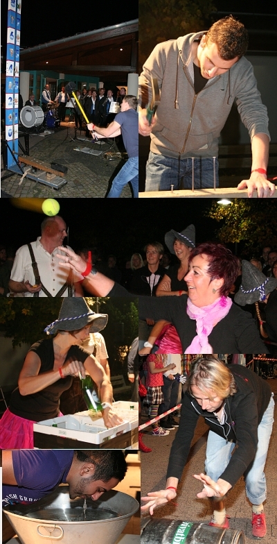 Zum Auftakt seines diesjährigen Oktoberfestes am 20. Oktober 2012 hatte das Blasorchester 1985 e.V. Gau-Odernheim zum bayerischen Sechskampf aufgerufen und 11 Mannschaften waren angetreten, um die sechs urigen Aufgaben in möglichst kurzer Zeit zu bewältigen. Angefeuert von einer großen Zuschauerschar galt es, für jeweils ein Mannschaftsmitglied, sich bei einer der Disziplinen Hau den Lukas, Dosenwerfen, Nägel einschlagen, Bierflaschen umsetzen, Äpfel mit dem Mund fischen und Bierfass rollen zu beweisen. Die schnellste Mannschaft schaffte dies immerhin in gut zwei Minuten (2:07-50). Die langsamste Mannschaft benötigte mehr als die doppelte Zeit (4:44-56). Doch dies erfuhren Mannschaften und Zuschauer erst bei der Siegerehrung am späten Abend.