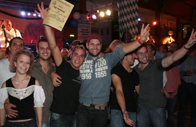 Für die große Überraschung sorgte dann Moderator Gerhard Zibell bei der Bekanntgabe der Gewinner des bayerischen Sechskampfs. Der erste Preis ging an die einzige auswärtige Mannschaft, die “Odenwälder Bube” aus Mittershausen im Odenwald. Die Gruppe darf sich jetzt auf eine Party für bis zu 30 Personen mit Fassbier, Grillhaxen und musikalischer Unterhaltung freuen. Den zweiten Platz belegte mit nur sechs Sekunden Abstand (2:13-55) die Gruppe “Nudelsalat” und den dritten Platz das Fußball-AH-Team des TSV Gau-Odernheim (2:40-62). (us)