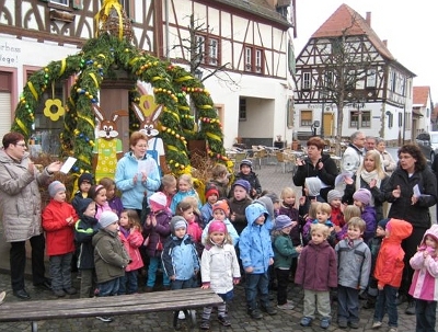 Am Nachmittag des 18. März 2012 wurde die Osterkrone mit Unterstützung der Kinder und Erzieher des Kindergartens “Am alten Schloss” festlich eingeweiht. Sie erfreuten Jung und Alt mit fröhlichen Frühlingsliedern. Im Anschluss daran wurde in der im Rathaus eingerichteten Cafeteria leckeren Kuchen, Torten sowie Kaffee und Kakao gereicht. Trotz des weniger schönen Wetters wurde die recht gut besucht.