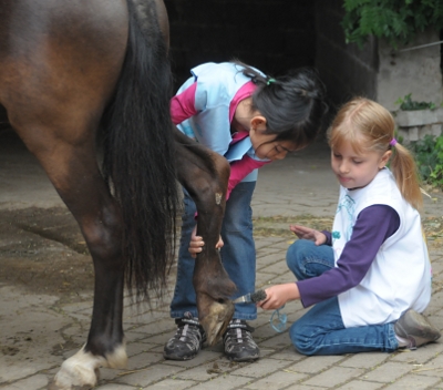 Das Highlight für die Mädchen einiger Landfrauen begann am 09.07.12 in Mettenheim im “Pferdehof der schwarzen Prinzen”. Dort erwarteten die Mädchen 4 Ponys. Mit Feuereifer konnten die Mädchen sich im Umgang mit den Ponys üben. Ob Pferde putzen, füttern, führen, und ausreiten, dies alles war in der einen Woche möglich. Zum Abschluss der Woche wurde dann Samstags der “Ponyführerschein” nach gelungener Vorführung von den Besitzern des Pferdehofes überreicht. (tl)