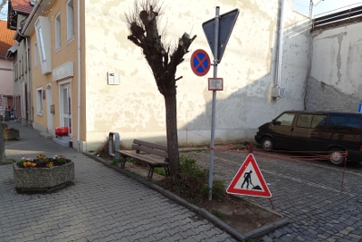 Mit Unterstützung von Radladerfahrer Dieter Kratz wurde die Aktion an einem “Arbeitsmittwoch” durchgeführt. Eine neue Bank wurde aufgestellt, die von zwei Pflanzkübeln - die auch sofort bepflanzt wurden - flankiert wird. Gleichzeitig wurde der gesamte Parkplatz einer gründlichen Reinigung unterzogen.