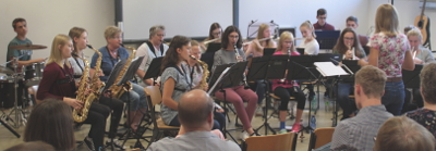 Nach kurzer Begrüßung durch den 1. Vorsitzenden Hartmut Nagel startet das Jugendorchester unter der Leitung von Maike Atzinger gleich mit einer Kampfansage: “Star Wars”. Diesem Auftaktstück sollen viele weitere musikalische Leckerbissen folgen, wobei Jugendorchester und einzelne Solisten, sowie verschiedene Gruppen sich ergänzend abwechseln.