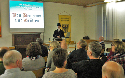 … lautete das Thema des diesjährigen Frühjahrsvortrags des Geschichtsvereins. Anhand zahlreicher - teils noch nicht veröffentlichter - Bilder stellte Thomas Ehlenberger die Entwicklung der Bestattungskultur am Beispiel Gau-Odernheims von der Steinzeit bis heute dar. Neben den unterschiedlichen Bestattungsformen und der Entwicklung der Grabsteine im Laufe der Jahrhunderte stießen besonders die Fundstellen historischer Gräber in der Gau-Odernheimer Ortslage auf große Resonanz des Publikums. Durch Vergleichsbilder aus anderen Städten wurden die Originalaufnahmen der örtlichen Funde ergänzt. Gerade die Bestattungen in der Kirche und die Ausgrabungen der vergangenen 150 Jahre bewegten die Zuhörer. So manche Frage und Rückmeldung aus dem Auditorium zur keltischen Ringgrabanlage an der Bahnstraße, den jüdischen Friedhöfen oder auch den Gedenksteinen im Ort zeigte den Bedarf nach weiteren Terminen, Führungen und Aktionen. Auch die nachfolgenden Diskussionen bei einem Gläschen Wein ließen das vorhandene Interesse an einem oft tabuisierten Thema deutlich zutage treten. Zur weiteren Dokumentation sucht der Geschichtsverein noch Gau-Odernheimer Bilder von Grabsteinen, den Friedhöfen oder Beerdigungen aus den letzten 100 Jahren. Wer solche Fotos zum Einscannen zur Verfügung stellen kann, möge sich bitte bei Thomas Ehlenberger unter 06733 1079 melden. (te)