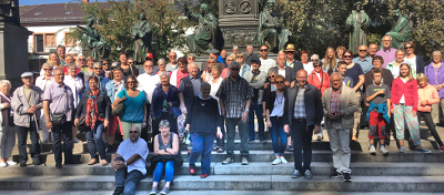 Nach dem Austausch der Geschenke und einem Willkommensdrink steuerte man mit zwei Bussen Worms an. Beeindruckend war die kurzweilige Stadtführung “Zu Fuß durch zwei Jahrtausende”. Die Nibelungenstadt hatte einiges zu bieten: den romanischen Dom, das Lutherdenkmal, Reste der Stadtmauer und den Wallgraben, davor der große jüdische Friedhof. Schließlich fuhren die beiden Gruppen zur Rheinpromenade, wo das Hagendenkmal den Abschluss bildete. Hagen, das ist der, der den goldenen Nibelungenschatz im Rhein versenkte. Mit dem Mittagessen im “Alten Ruderhaus” und dem Kaffee im “Hagenbräu” hatten die Organisatoren einen guten Griff getan. Nach dem rundum gelungenen Tag verabschiedete Ratsmitglied Manfred Brunn die französischen Gäste.
