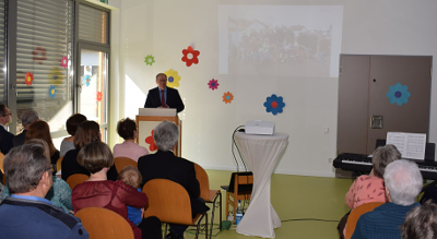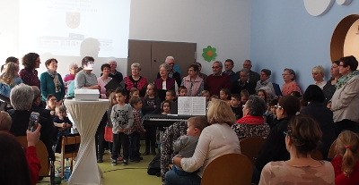 Zahlreiche geladene Gäste durfte Ortsbürgermeister Heiner Illing zur offiziellen Einweihung des neuen Kindergartens “Nach dem alten Schloss” begrüßen, darunter neben den Vertretern der ausführenden Firmen, die Leiterin der Realschule Frau Wilmer, Elternvertreter, Erzieherinnen, Gemeindebedienstete, die Architekten Gerold Diehl und Susanne Matthes, Gemeinderäte und Beigeordnete, sowie Landrat Ernst-Walter Görisch und VG-Bürgermeister Steffen Unger. Auch der Männergesangsverein mit Frauenchor ließ es sich nicht nehmen, diesen für alle Beteiligten erfreulichen Anlass mit seinem Gesang zu unterstützen. Extra für diesen Anlass wurde sogar ein Lied zusammen mit den Kiga-Kindern einstudiert. Bei seiner Ansprache umriss Bürgermeister Heiner Illing nochmals die Historie zur Entstehung des Neubaus, die ihren Anfang bei anstehenden Sanierungsmaßnahmen des alten Kindergartens nahm und im Neubau eines 4-zügigen Kindergartens endete. Auch über zahlreiche Hürden und Hindernisse, die es galt aus dem Weg zu räumen, konnte er berichten. Dem Gemeinderat, den Beigeordneten Ernst Schad und Renate Volpp, Ratsmitglied Thomas Merker, Gemeindearbeitern, ausführenden Firmen, den Mitarbeitern der VG, den Nachbarn und ehemaligen Pächtern der Gärten sowie den Architekten sprach er seinen Dank aus. Ohne diese Damen und Herren wäre das Projekt nicht realisierbar gewesen. Die Architekten erläuterten noch einmal das Projekt und untermauerten dies mit den technischen Zahlen. Bei den Grußworten gingen die Kiga-Leiterin Frau Kratz und die Vorsitzende des Fördervereins Frau Hafner noch einmal ebenso wie Landrat Görsich und VG-Bürgermeister Unger auf die Notwendigkeit des Projektes und den Stellenwert der frühkindlichen Bildung ein. Unisono unterstrichen alle das gelungene Konzept und die hervorragende Umsetzung bei Einhaltung der Baukosten. Aus der Elternschaft wurde ein Baum gespendet, der in das Konzept der Außengestaltung einfließen wird. Beim anschließenden Tag der offenen Tür machten die Bürgerinnen und Bürger, aber auch die Kinder regen Gebrauch von der Möglichkeit die neue Einrichtung zu begutachten. Auch hier die einhellige Meinung: Projekt gelungen!