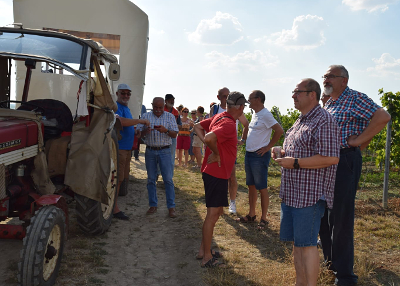 Es folgte ein buntes Programm. Eine vierzigköpfige Wandergruppe aus französischen Gästen und Gau-Odernheimer Bürgern startete zu den Wildtulpen am Lieberg und zum 246 m hohen Gipfel des Petersberges. Christine Merkel-Köppchen und Isabelle Diligent führten die Wanderer sicher zu den Zielen. Ortshistoriker Thomas Ehlenberger informierte über die Krypta, die Sage von den drei Schwestern, den Pilgerpfad, den jüdischen Friedhof und auch so alltägliche Dinge wie Pheromonfallen in den Weinbergen.