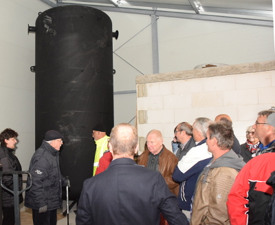Der SPD Ortsverein Gau-Odernheim hatte im Rahmen der Veranstaltungsreihe “SPD-vor-Ort” zur Baustelle des Blockheizkraftwerks eingeladen und Vorsitzender Heiner Illing freute sich fast vierzig interessierte Bürgerinnen und Bürger, die der Einladung folgten um sich über das Projekt zu informieren, begrüßen zu dürfen. Christoph Zeis von der ausführenden und betreibenden EDG (Energiedienstleistungsgesellschaft Rheinhessen) stellte die Technik und den umweltpolitischen Hintergrund dar. Auf dem Gelände der Gemeinde und der VG werden zukünftig über die gasbetriebene Kraft-Wärme-Kopplung und einen Pellet-Heizkessel sowohl die Realschule, als auch Petersberghalle und Bauhof der Gemeinde kostengünstig beheizt und mit Strom versorgt. Die Anlage wird unter Volllast 600 kW Heizleistung und 20 kW elektrische Energie liefern (dies würde ausreichen, um ca. 40 Haushalte mit Strom zu versorgen). Hierbei werden im Vergleich gegenüber konventioneller Erzeugung etwa 70% CO2 eingespart. Die Kosten in Höhe von 680.000 € werden mit 200.000 € vom Bund gefördert und die restlichen 480.000 € teilen sich Kreis mit 60%, VG mit 30% und Gemeinde mit 10%. Diese Beträge werden sich innerhalb der nächsten 20 Jahre über die Einsparungen amortisieren. Im Technikgebäude konnte man die sich im Aufbau befindlichen Geräte begutachten und Herr Zeis beantwortete kompetent die zahlreichen Fragen der interessierten Besucher.