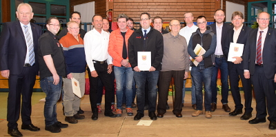 Bei den Ehrungen dankte Ortsbürgermeister Illing zunächst dem konstruktiv arbeitenden Gemeinderat, sowie den Beigeordneten und Fraktionsvorsitzenden. Für die Spende des Weihnachtsbaums am Obermarkt wurde Friedel Merz und für weitere Tannenbäume in Gau-Köngernheim Eva Stützel gedankt. Des weiteren wurden Beate Ahrens für die Erstellung des Logos der Kita, Christian Stecher für zahlreiche Spenden, Jens Rothenmeier von der Grundschule für die Leitung des “Rotznasenradios”, Andrea und Dittmar Bierle für den Verkauf von Grundstücken an die Ortsgemeinde (der erst den Bau des Radweges nach Biebelnheim ermöglichte), Architekt Diehl für die Planung des neuen Kindergartens und Norbert Hauck für besondere Leistungen im Metzgerhandwerk gedankt. Frank Meiser hat im Fuchsloch in Eigenregie ein verfallenes Wingertshäuschen restauriert und die Feuerwehrmänner Knut Burkhardt, Frank Einsfeld, Jochen Lutz, Andre Mühl, Michael Müller und Andreas Wiechers sind seit 25 Jahren bei der Feuerwehr. Ein besonderer Dank ging an Heiner Becker, der die beiden Wappen am Feuerwehrkreisel legte und an die beiden Herren Marcel Scheid und Alexander Nakonz, die in der Oppenheimer Straße einem Gau-Odernheimer Bürger das Leben retteten. Mit der bronzenen Ehrennadel wurde Jörg Pusch für das seit vielen Jahren kostenlose Aufstellen des Weihnachtsbaums am Obermarkt und Landtagsabgeordneter Heiko Sippel für die Unterstützung der Gemeinde, die erst die Vielzahl von Projekten ermöglicht, ausgezeichnet.