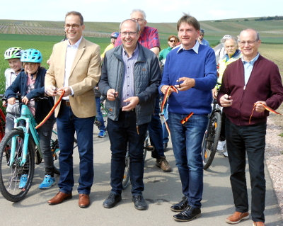 Landratskandidat Heiko Sippel lobte in seiner Ansprache, ebenso wie Steffen Unger, die neue Verbindung. Dass nicht nur zwei Gemeinden, sondern auch die Landkreise Alzey-Worms und Mainz-Bingen näherrücken, sei eine wichtige Sache. Nicht zuletzt komme die Verbesserung der Infrastruktur auch der Umwelt und dem Tourismus zugute.